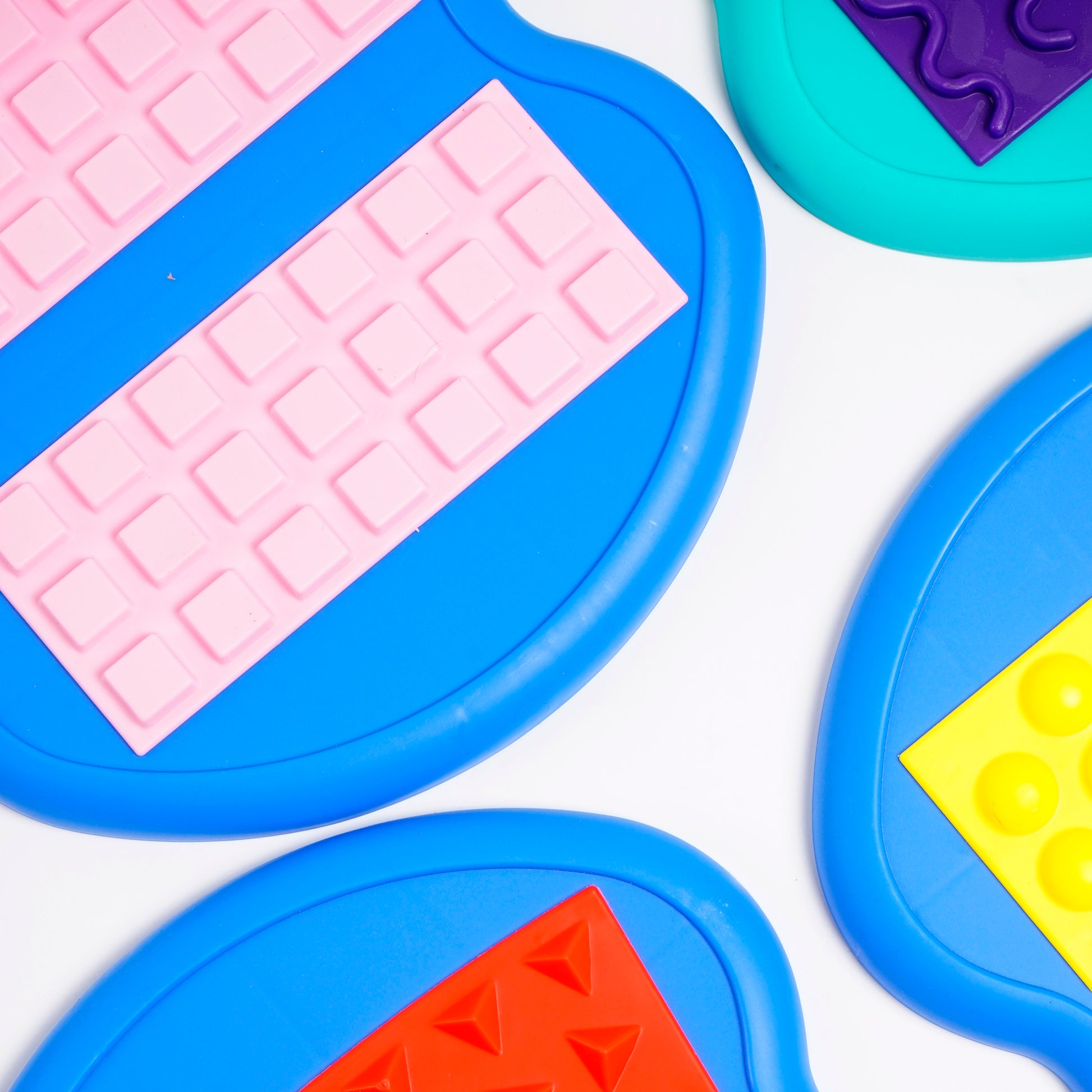 Hecho de plástico resistente y base antideslizante, el bandeja mide aproximadamente 30 cm de diámetro, con discos de 8–10 cm de diámetro. Los discos tienen diferentes patrones táctiles en silicona o TPR, fácilmente intercambiables para variar la experiencia sensorial. Apto para niños desde los 3 años, se recomienda usar sobre una superficie plana y bajo supervisión. Para limpiar, pasar un paño húmedo con jabón suave.