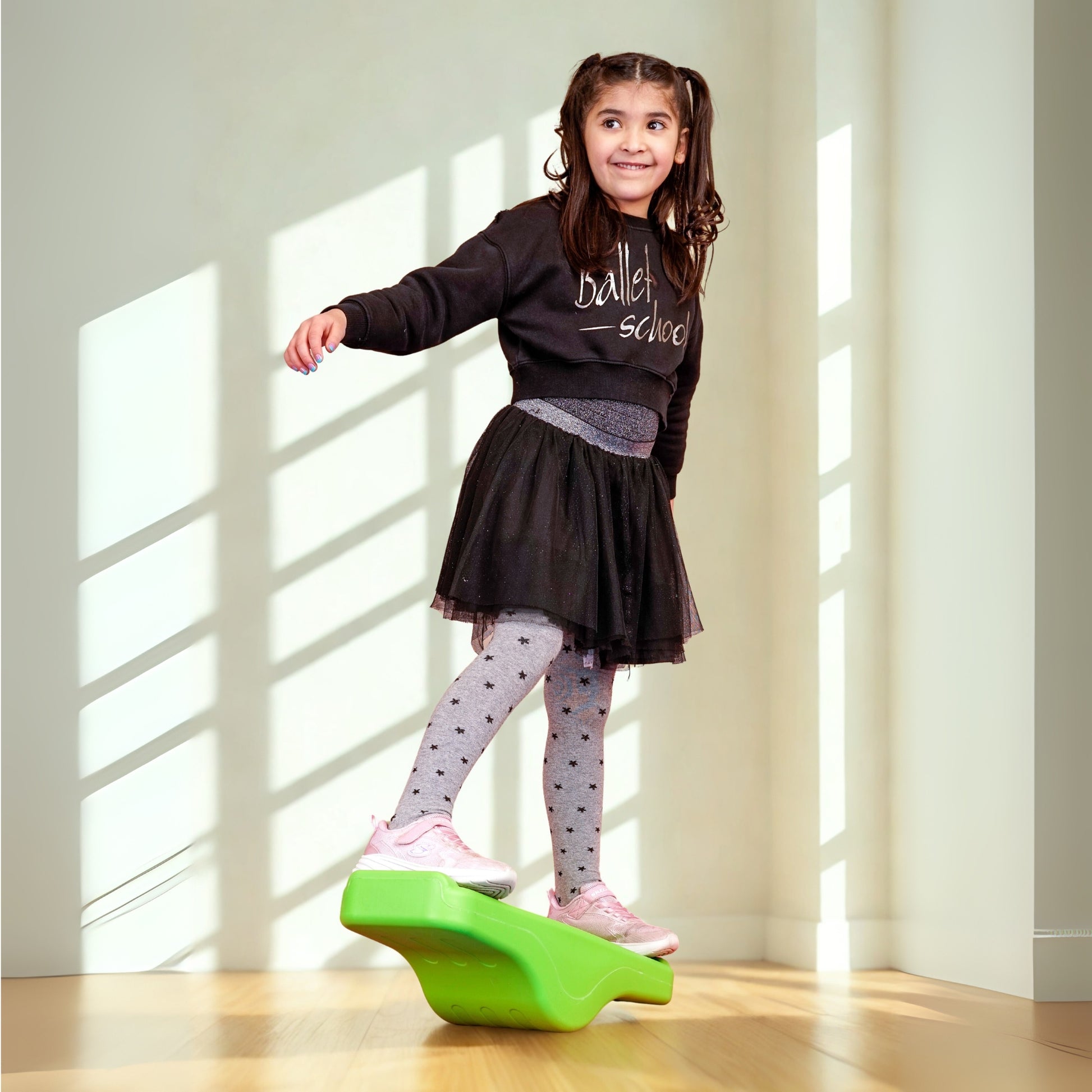 Equilibrarse y moverse sobre la tabla ayuda a entrenar la motricidad gruesa, reforzando músculos del tronco y piernas de manera divertida. Cada paso exige concentración y coordinación —lo que mejora el desarrollo sensorial— ayudando a los peques a conectar vista, tacto y balance. Además, los vibrantes colores añaden un estímulo visual que hace del juego una experiencia sensorial completa y atractiva.
